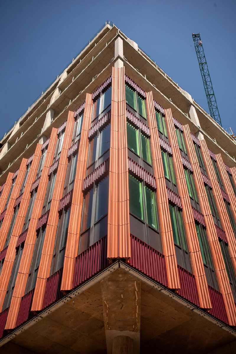 Showcasing a terracotta facade with florid motifs, vertical ribs, & a cantilevered base, 3CS will offer a desirable environment with health and wellbeing at its core.