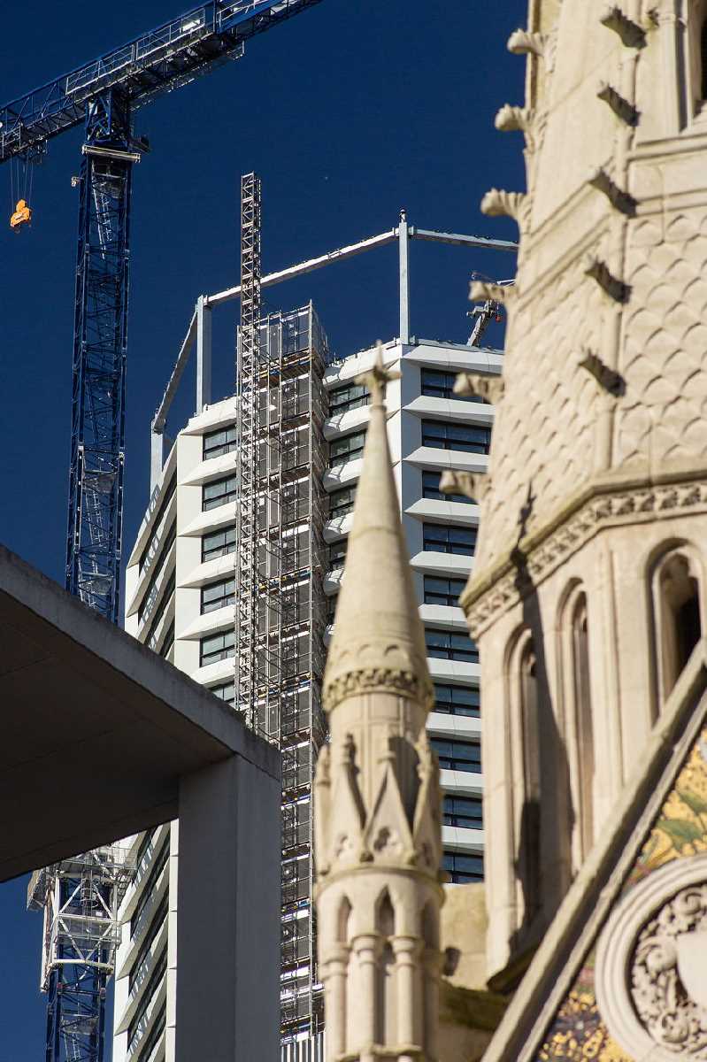 Scaffolding went steadily up at 77 Paradise Queensway before it was demolished by JRL Demolition Group - as seen in the above.