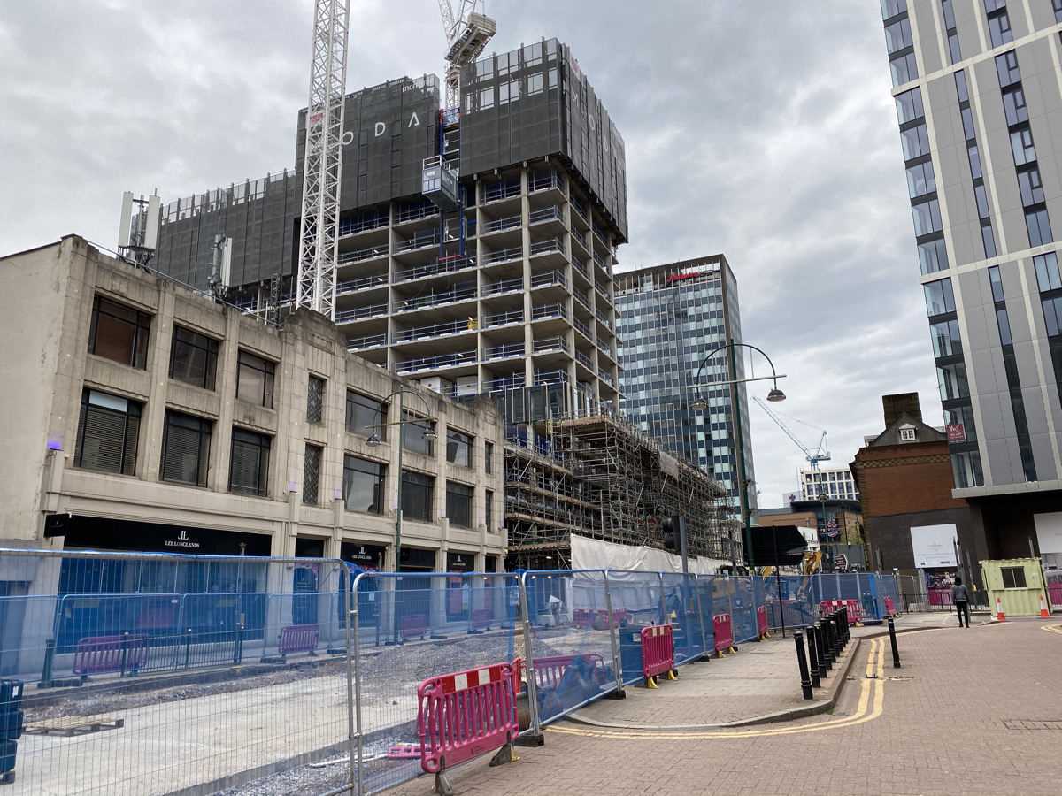 A misty morning of the 21st July for the latest photo of this almost externally complete construction on Broad Street. The cladding has reached full height bar the parapet in places and the full effect of this massive tower is apparent. Great photos from Elliott and Daniel from several viewpoints in this photo gallery update.